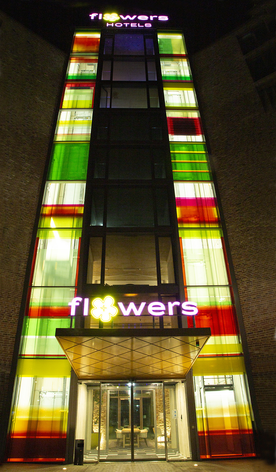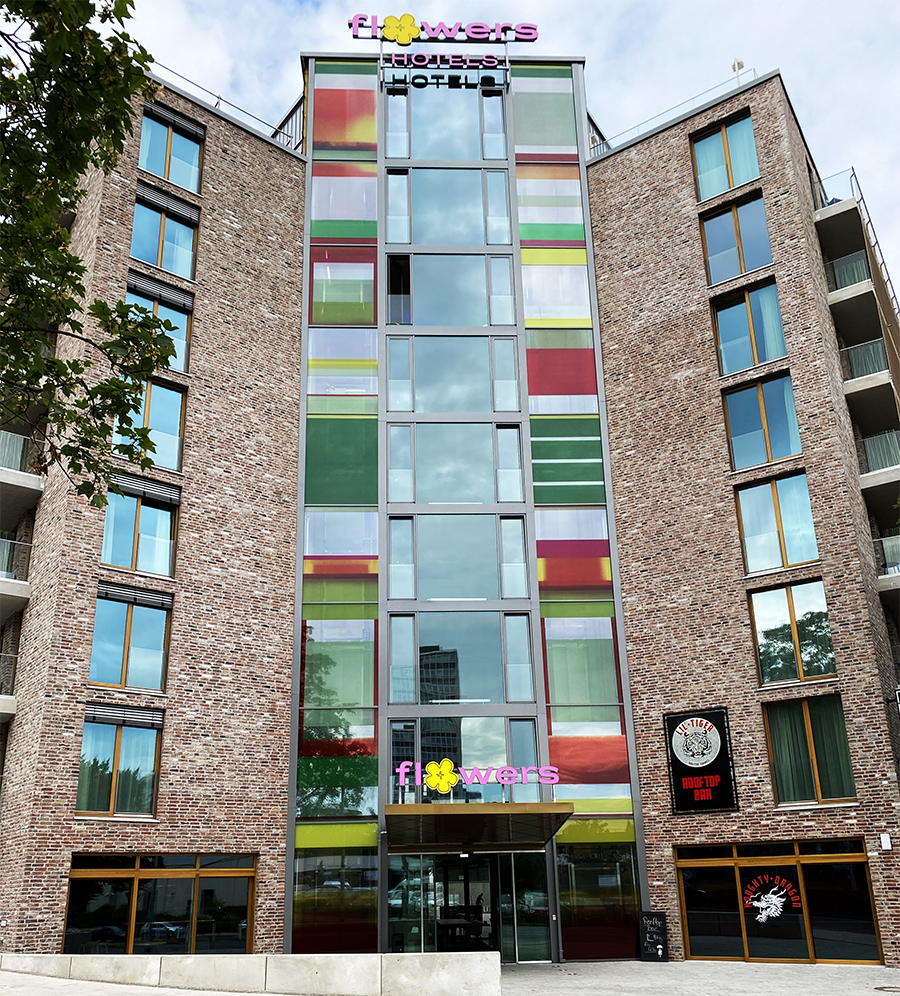 art in architecture - creation of the glass facade in front of the two elevators of the Flowers-Hotel in Essen